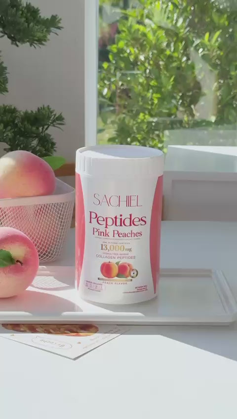 Sachiel Peptides Pink Peaches is a premium Japanese Hydrolyzed Marine Collagen Peptide supplement delivering 13,000 mg of collagen per serving to support skin health, hair strength, nail resilience, joint mobility, and overall wellness.